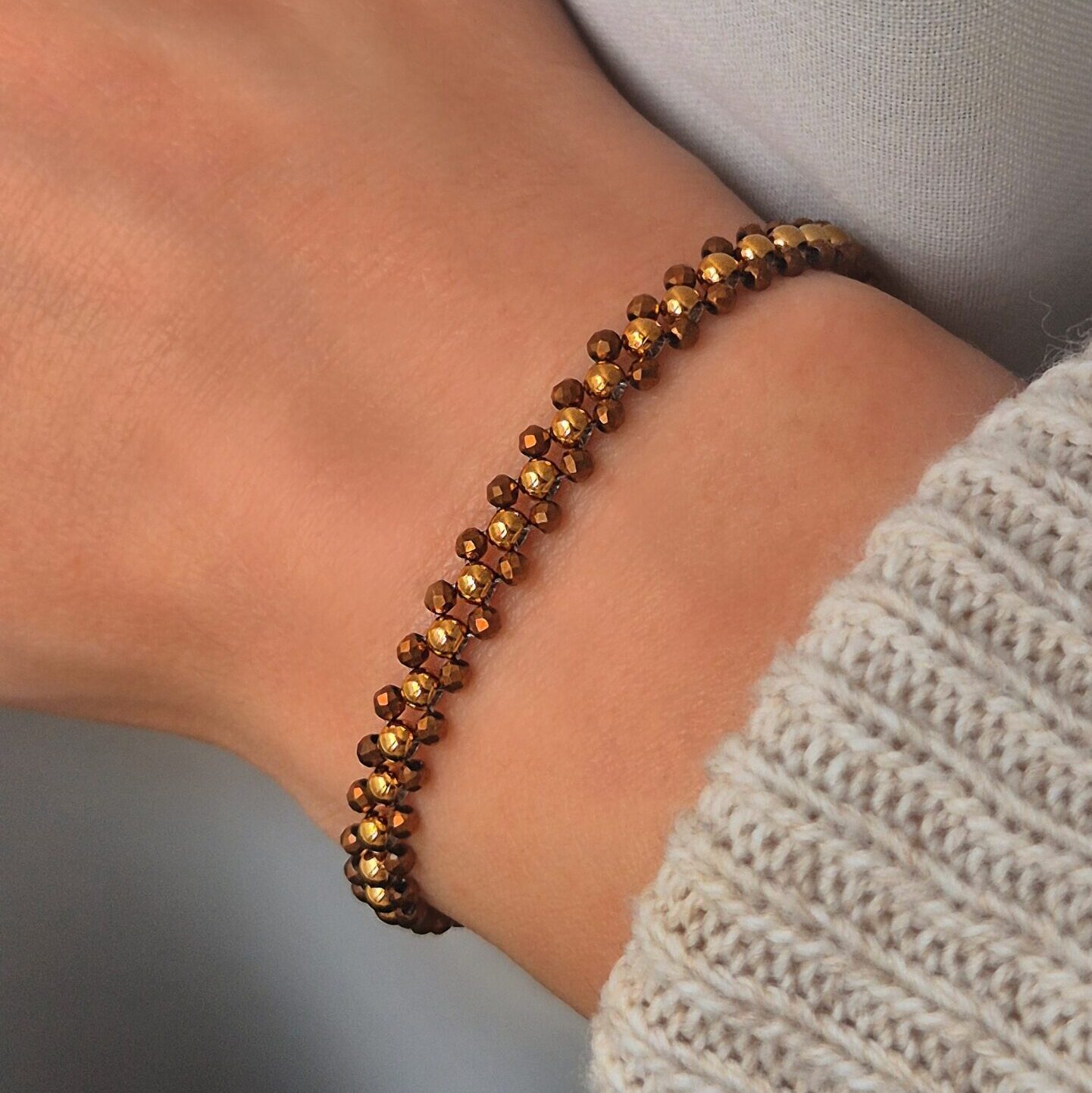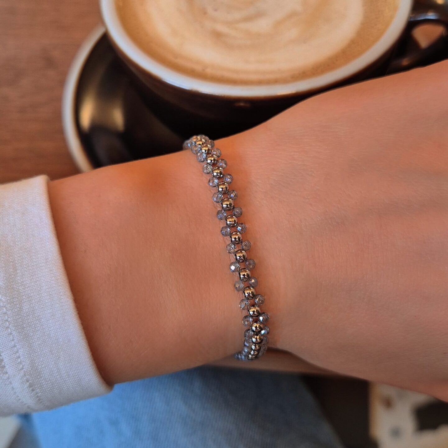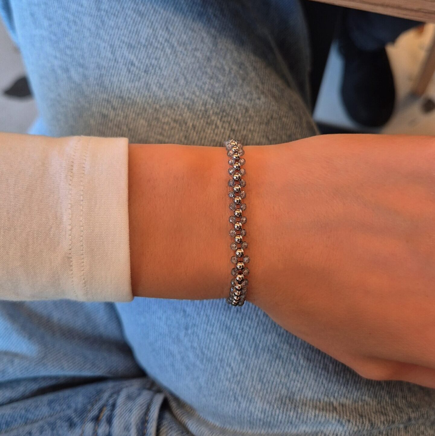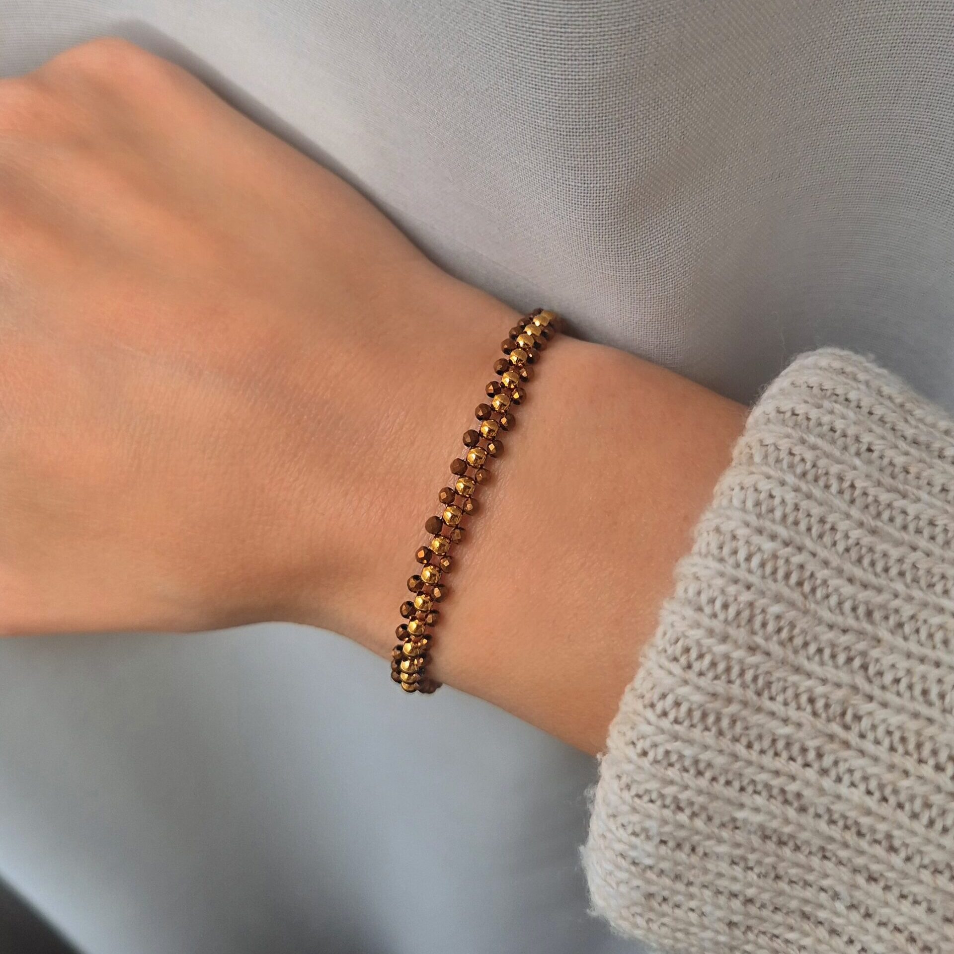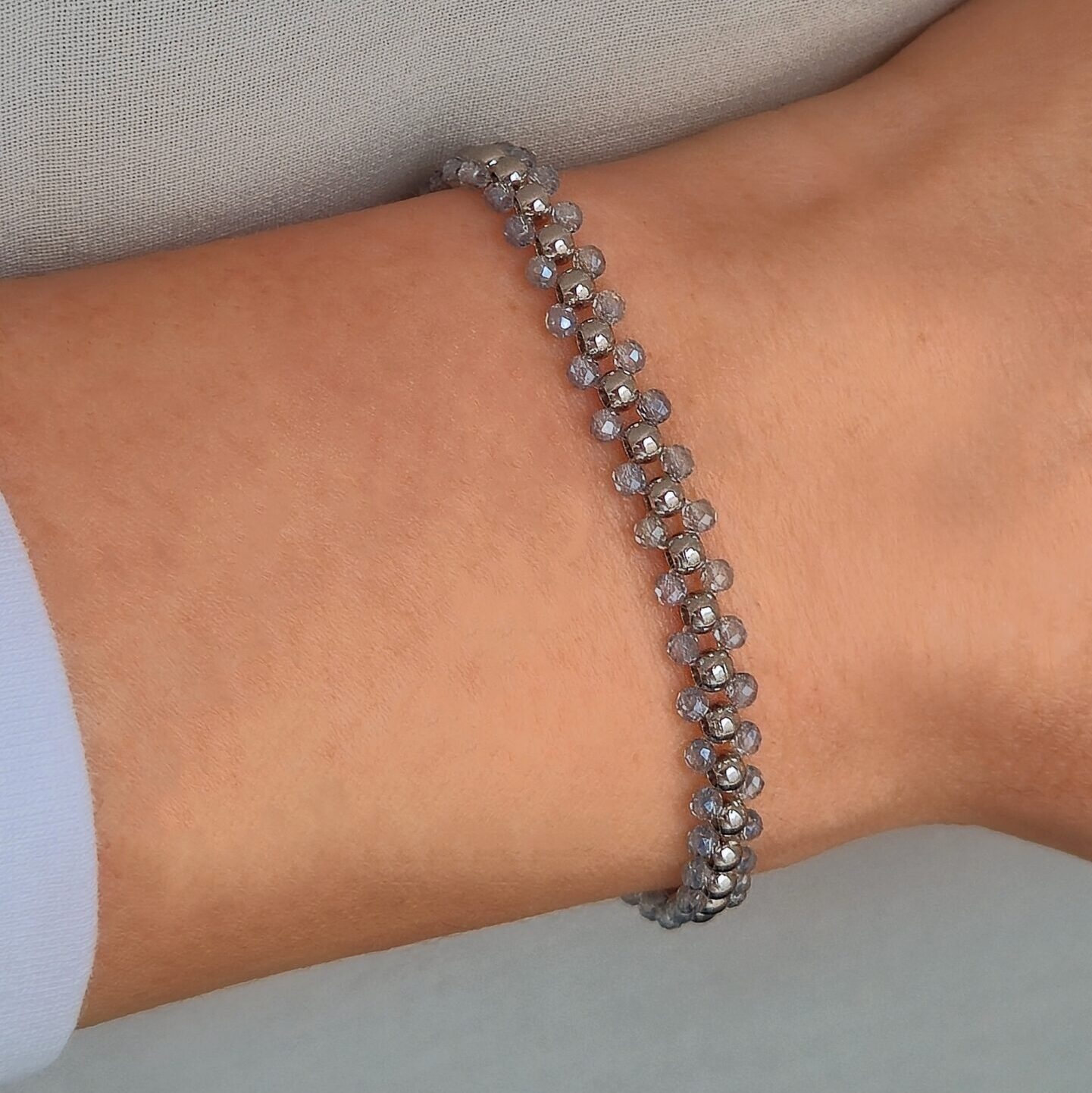 - При съхранение навивай гривните и колиетата с мъниста на кръг, вместо да ги сгъваш — така ще запазиш кордата от неръждаема стомана в добро състояние.