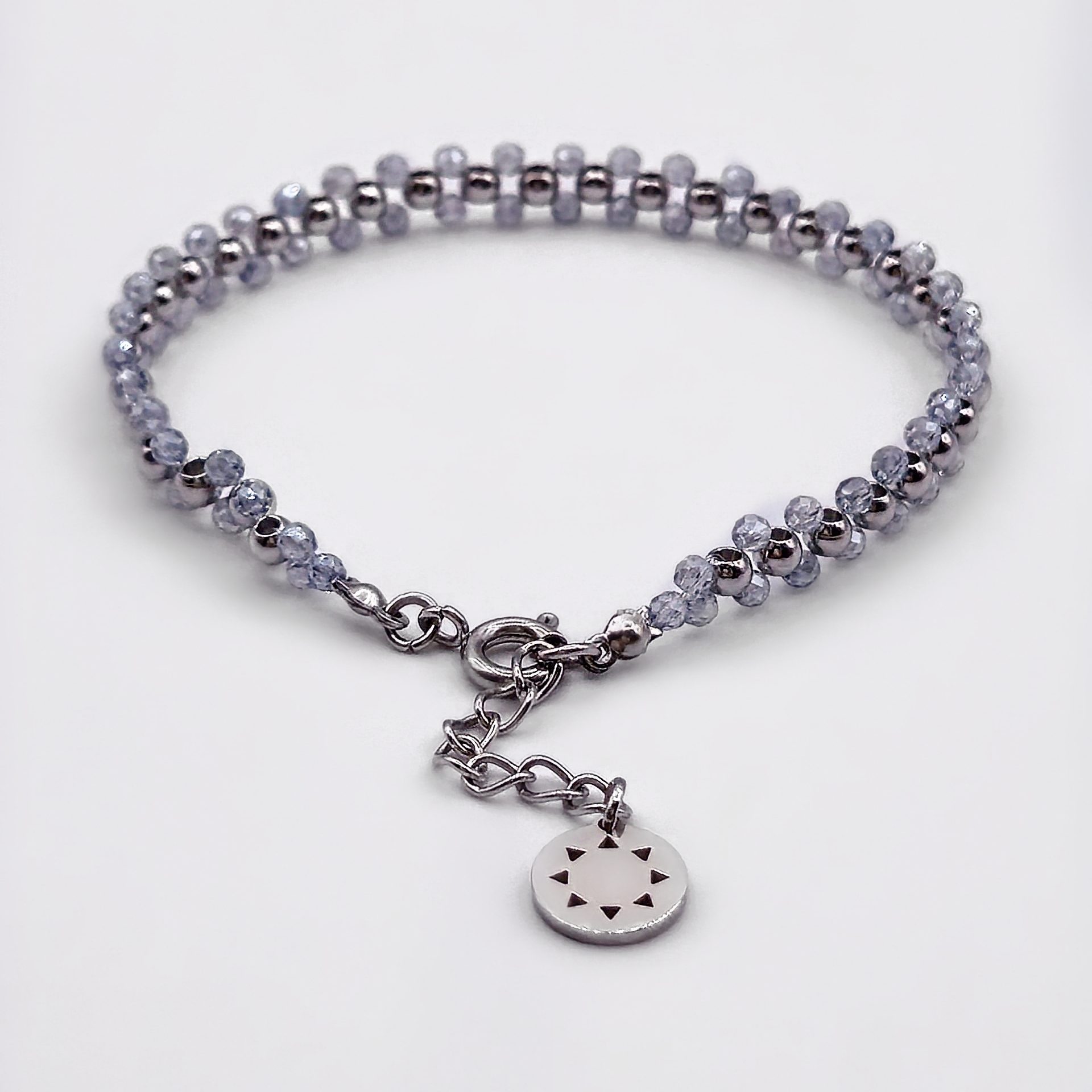 Гривната Mini Sun Oрба съчетава фини 2 мм стъклени мъниста с 3 мм елементи от неръждаема стомана в модел, който изглежда сякаш плава на китката ти. Завършена е с новата висулка Mini Sun, която се състои от малките триъгълничета на Ray, оформящи топло слънце, което ще искаш да носиш всеки ден!