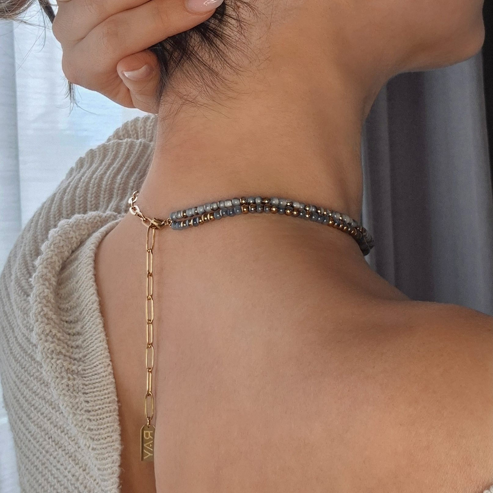Your Ray Jewelry is designed to fit seamlessly into your everyday life — waterproof stainless steel and durable natural stones mean you can shower, swim, or sweat without worry. To keep your pieces looking their best, here’s a little care guide: