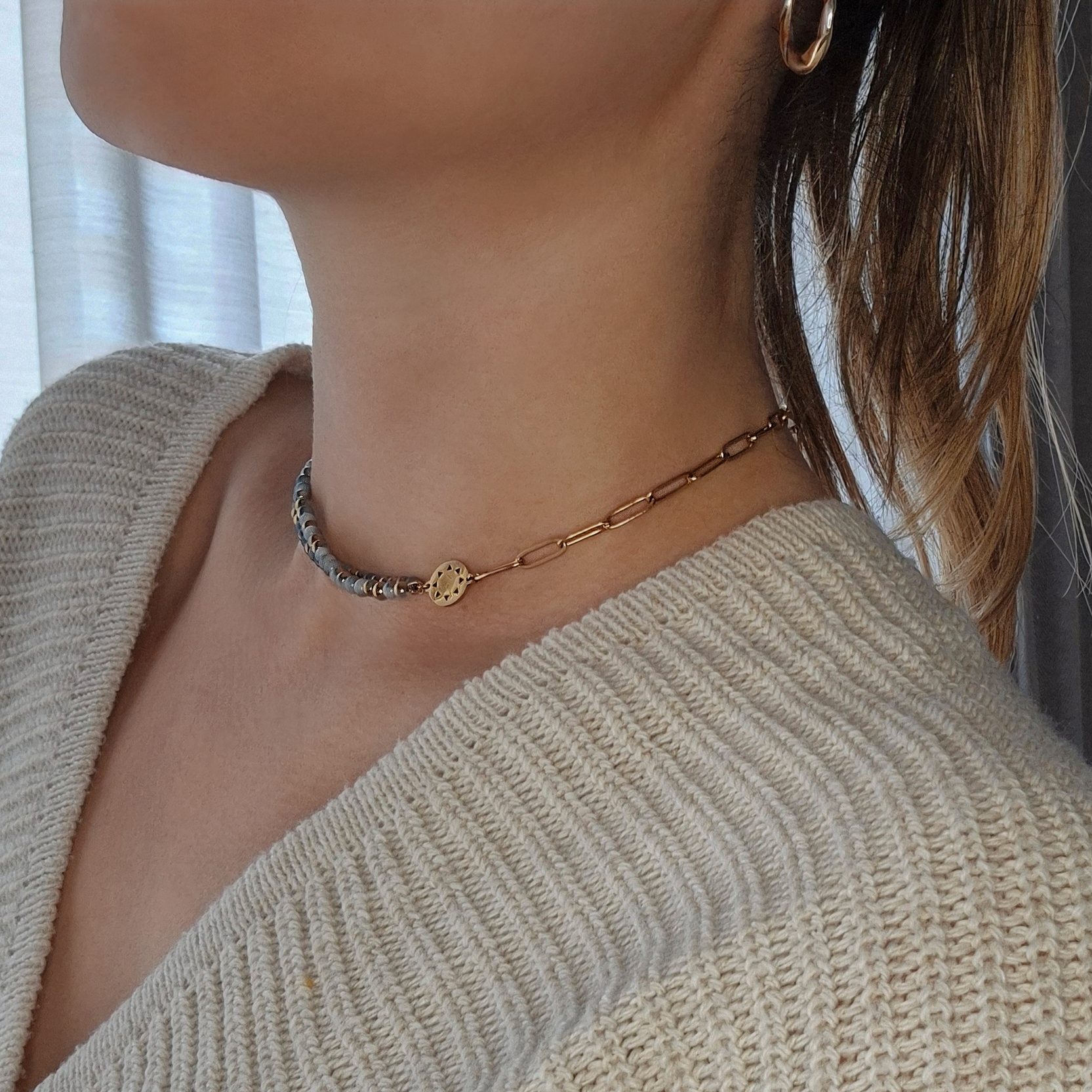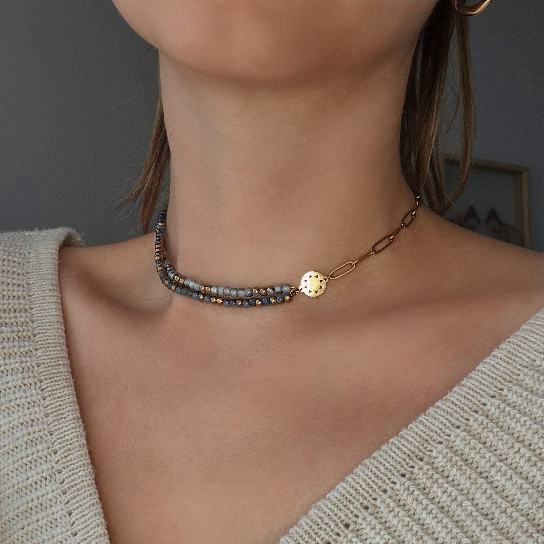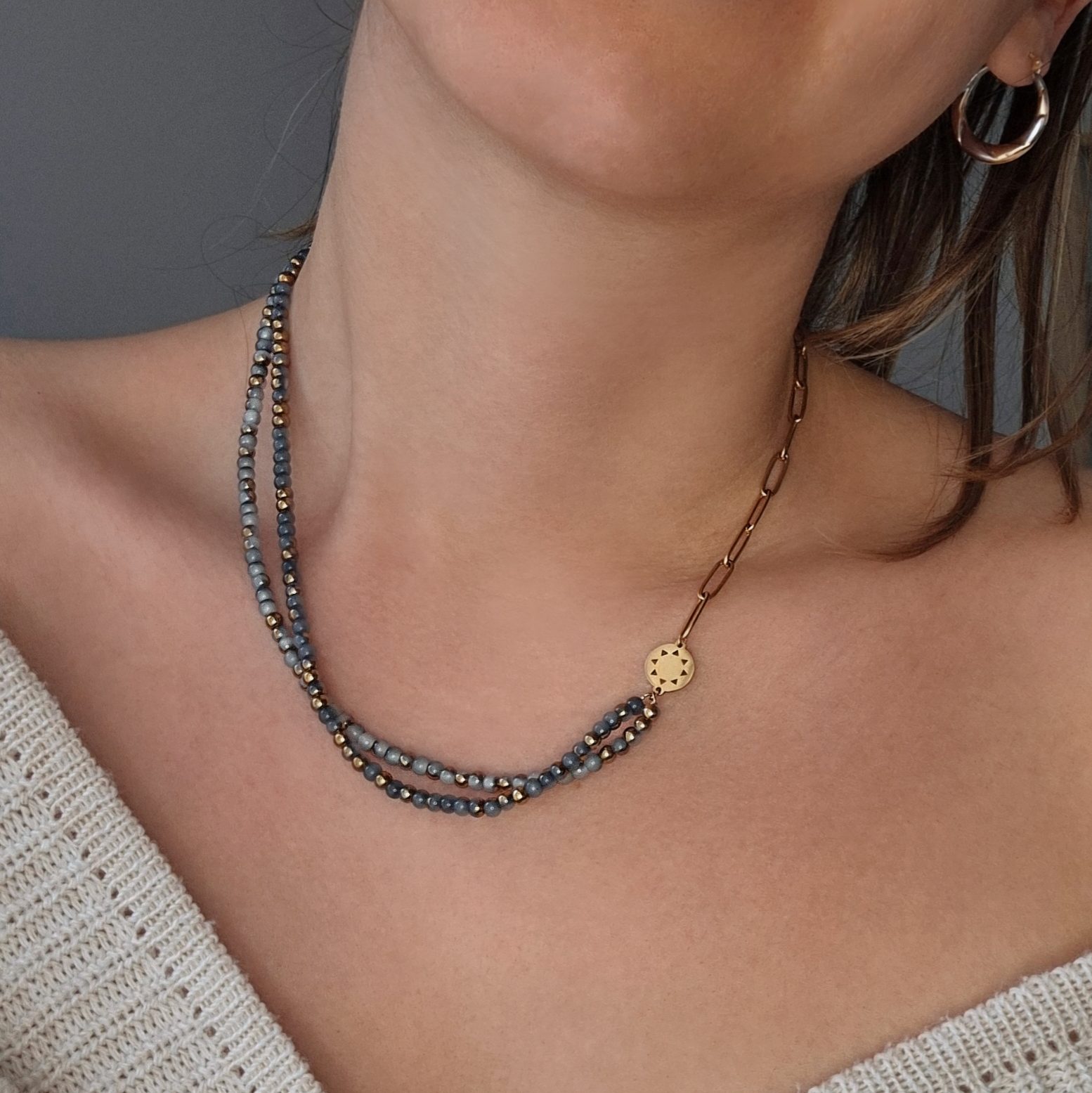 Wear it symmetrically or asymmetrically, whatever fits your mood. This necklace looks good no matter which way you turn it!