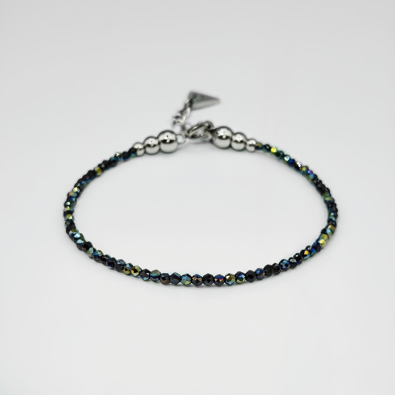 - When storing, gently roll your beaded bracelets and necklaces into a circle rather than folding them — this helps keep the stainless steel cord in shape.