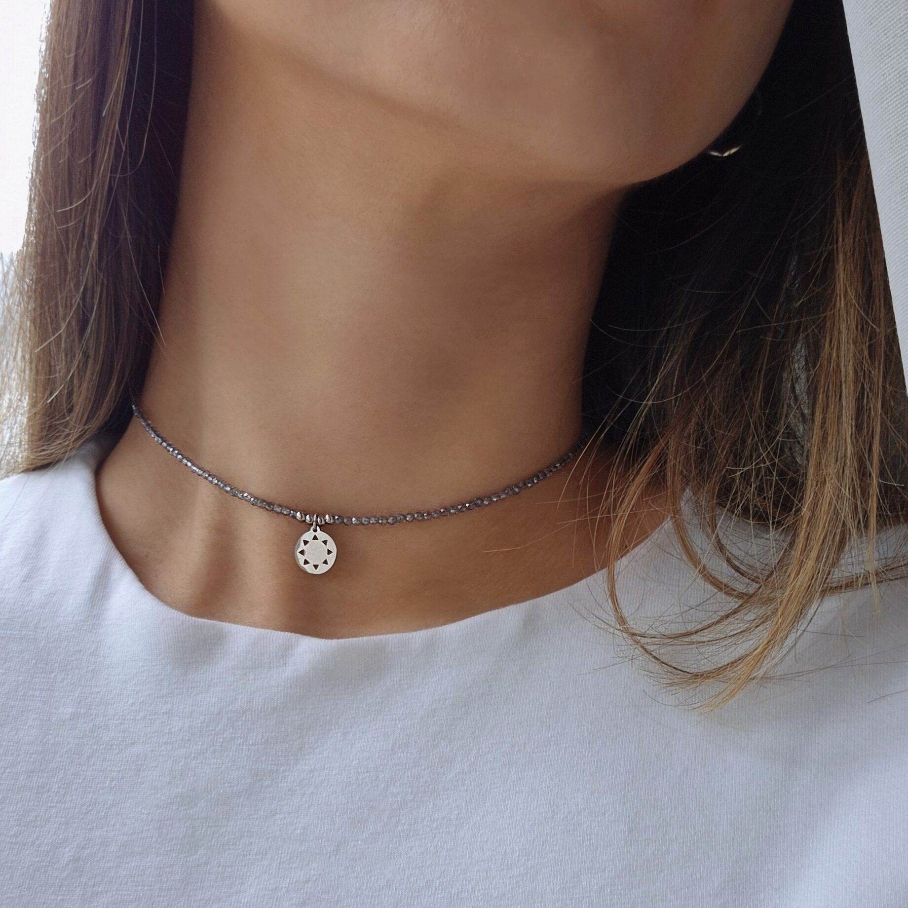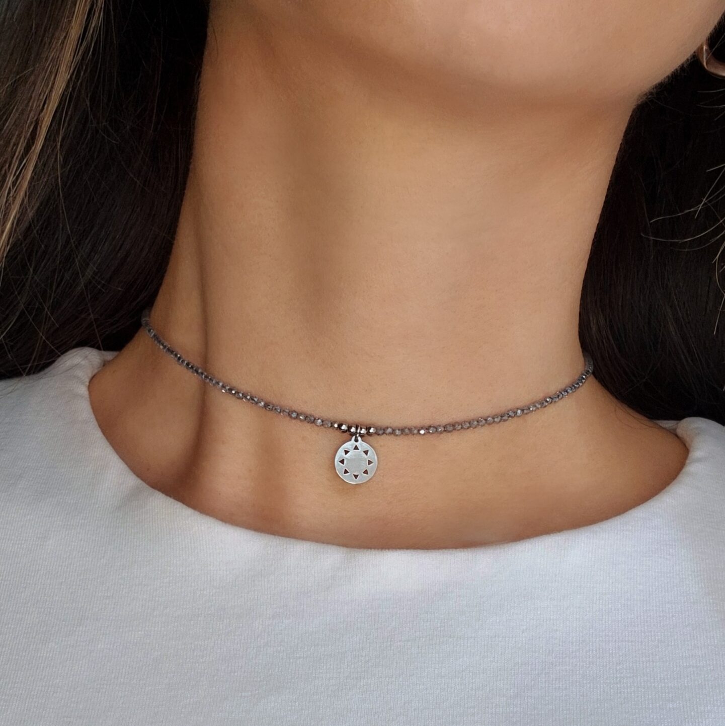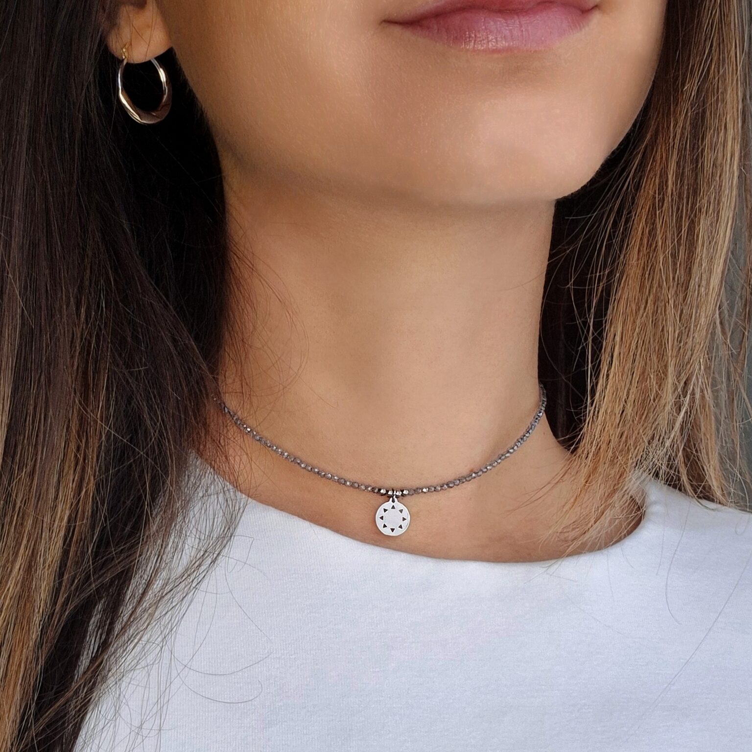 Every necklace is finished with the Mini Sun pendant, formed from small triangles arranged in a circle to create a warm sun symbol you can carry close to your heart. Made with stainless steel elements that stay shiny and durable, it’s designed for daily wear.